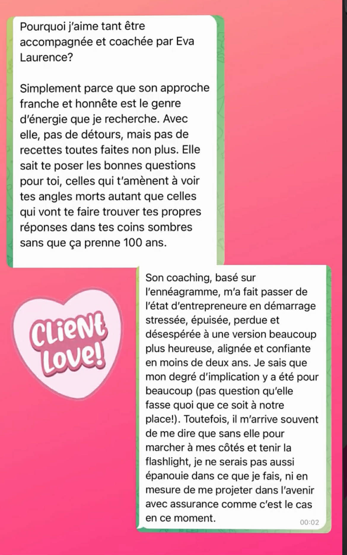 Toujour! Et c'est moi qui est au bout du fils que ce soit dans mes accompagnements privés ou semi-privé. Tu n'auras pas à raconter ton histoire à 3 personnes différentes avant d'avoir accès à mon cerveau.